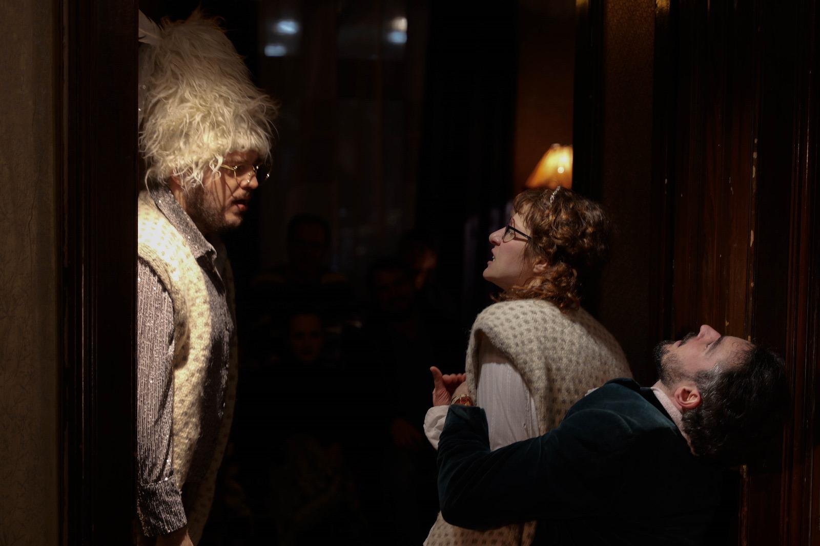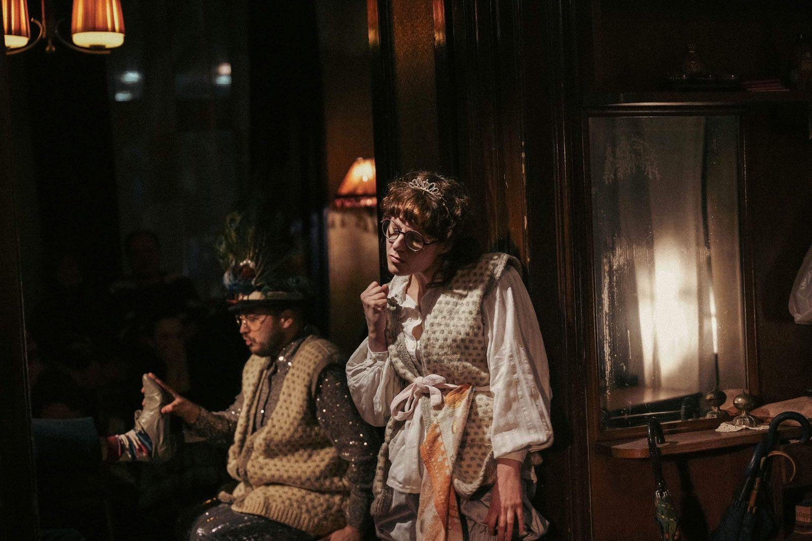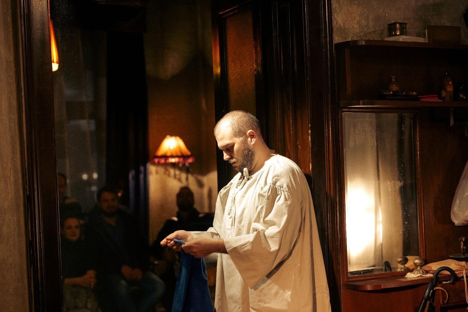 Представа је специфично амбијентално постављена у просторијама Таковске 17. Са публиком која седи око глумаца и глумцима који им се директно обраћају, са локалним комшилуком у мешавини вештачког и природног светла – „Просидба” је јединствено позоришно искуство.