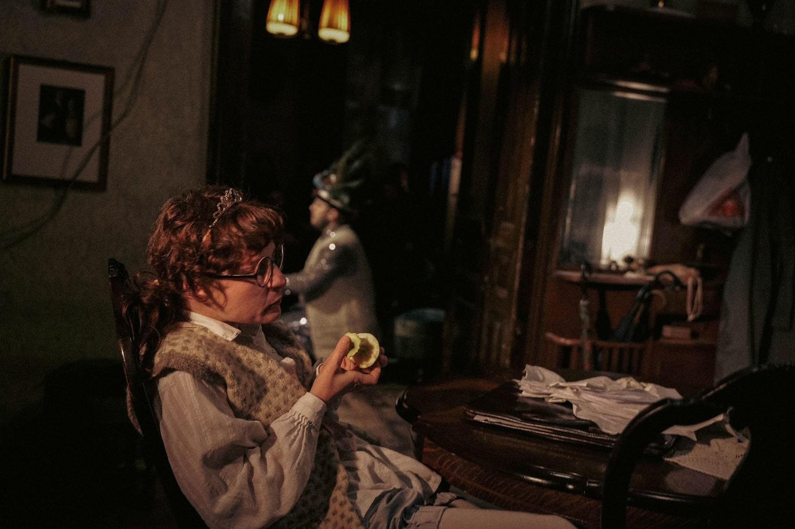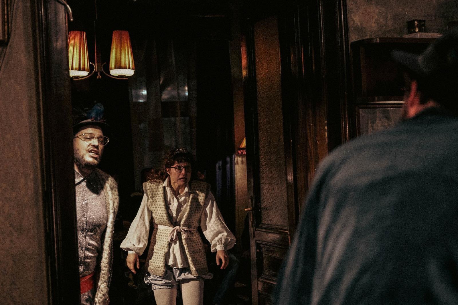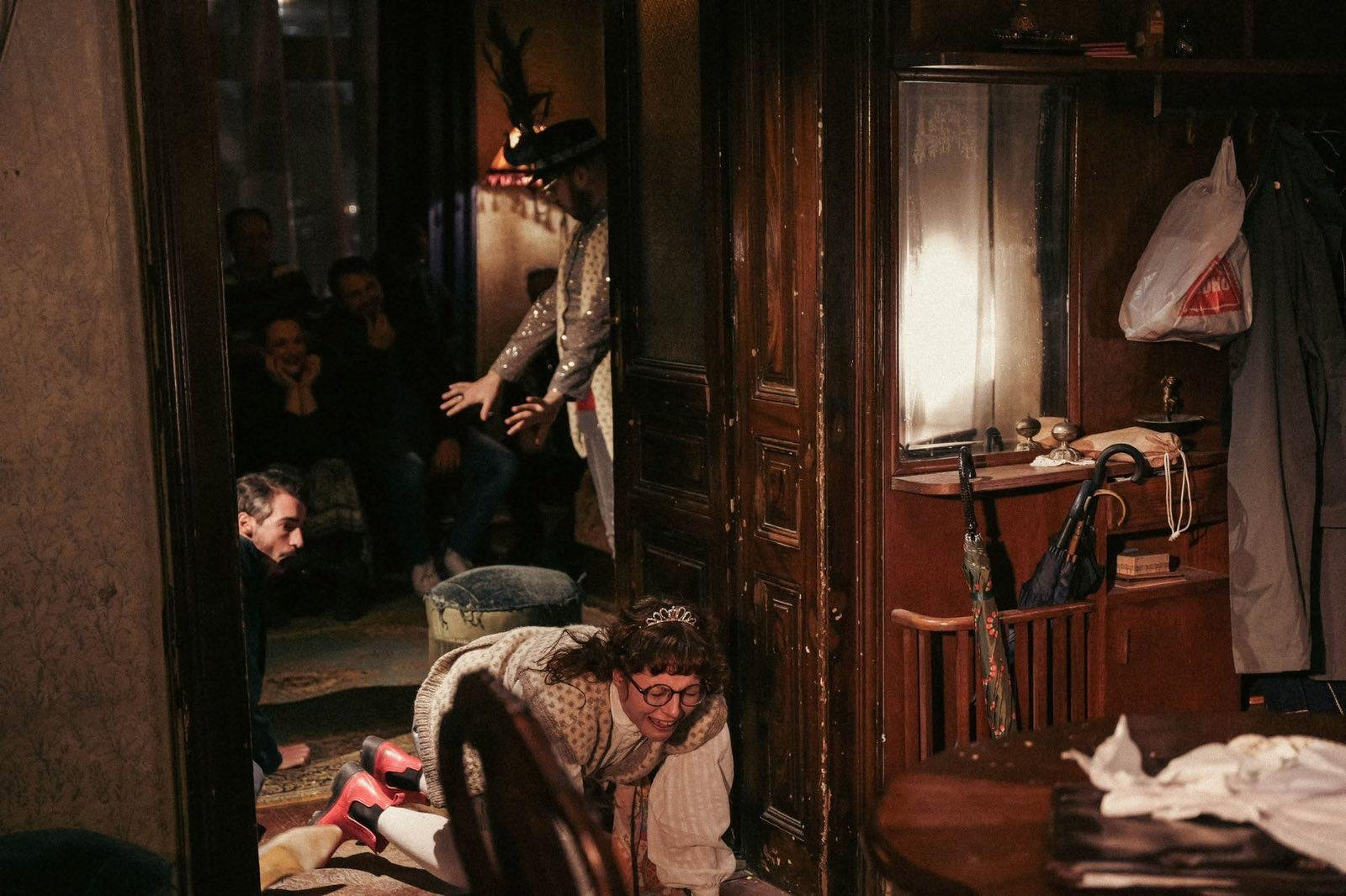 Представа је специфично амбијентално постављена у просторијама Таковске 17. Са публиком која седи око глумаца и глумцима који им се директно обраћају, са локалним комшилуком у мешавини вештачког и природног светла – „Просидба” је јединствено позоришно искуство.